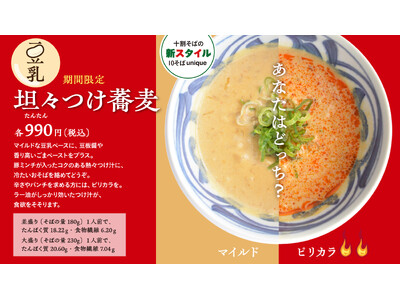 選べる辛さ、マイルドorピリカラ「十割蕎麦専門店 10そば」から、「豆乳坦々たんたんつけ蕎麦」が期間限定で登場!