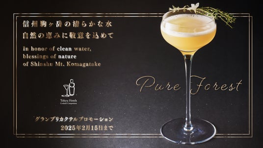 東急ホテルズ&リゾーツ株式会社(東京都渋谷区、取締役社長 村井 淳)は、2024年12月5日(木)~2025年2月15日(土)の期間、運営する全国18のホテルで、「第1回東急ホテルズカクテルコンペティション」にてグランプリを受賞したカクテル「Pure Forest(小西 克也 作)」を販売いたします。