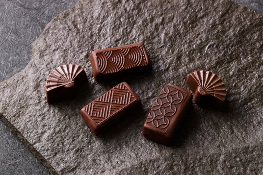 華やかな舞を想像させる扇型や、まるで上生菓子のようなボンボンショコラなど、ひと箱にさまざまな和のエッセンスが込められています。