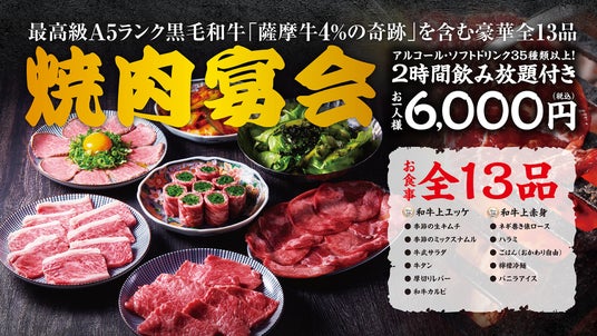 忘年会はA5和牛で贅沢に〆る!「和牛焼肉 築地牛武」練馬店が名物尽くしの全13品「焼肉宴会コース」販売開始!生ビール含む120分飲み放題付き「焼肉宴会コース」6,000円(税込)でご提供!