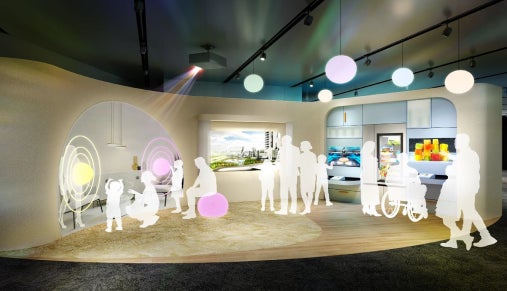 当社は大阪ヘルスケアパビリオンのリボーン体験ルート「ミライの都市ゾーン」において、リビング、キッチン、ウィンドウの3つのコンテンツにて構成された空間で、未来の暮らしを体験できる展示を行います。