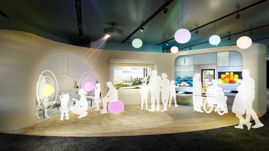「2050年のミライのホーム」を展示。リビング、キッチン、ウィンドウの3つのコンテンツで構成された空間で、未来の暮らしを体験できます。