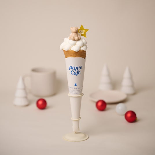 スノーホワイトを思わせるふわふわなホイップにピケベアが座った、年末限定のクレープがシーズン・店舗限定で登場です。