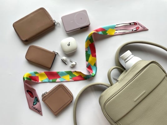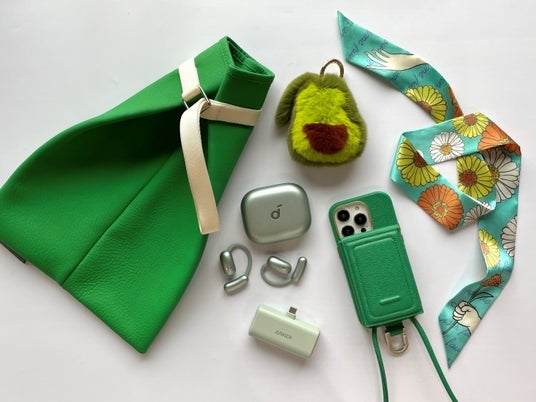 (左上から時計回り)「イッチ」ウォレット37,400円、「アンカー」モバイルバッテリー3,990円、「コトンタン」スカーフ19,800円、「オブジェクツアイオー」バッグ77,000円、「イッチ」ウォレット28,600円、キーケース12,100円、「アンカー」イヤホン19,990円 ※その他は参考商品