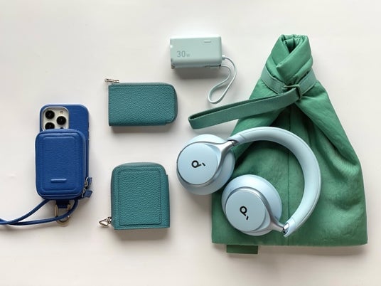 (左上から時計回り)「オブジェクツアイオー」レザーストラップ一体型マイクロバッグ&iPhone用ケースセット28,600円、「イッチ」キーケース13,200円、「アンカー」モバイルバッテリー5,990円、「イッチ」バッグ11,000円、「アンカー」ヘッドフォン10,990円、「イッチ」ウォレット28,600円