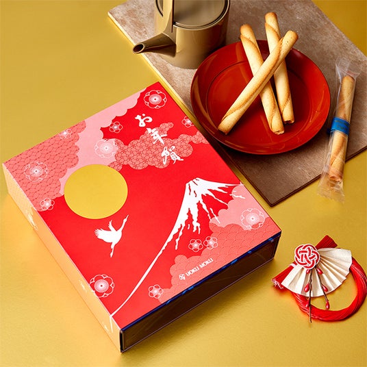 50年以上愛され続ける、ヨックモックの代名詞「シガール(R)」20本入。おめでたい紅白のスリーブに、縁起の良い「初日の出」をイメージしてデザインしました。パーソナルギフト用として、社用として、幅広い用途でお楽しみいただけます。