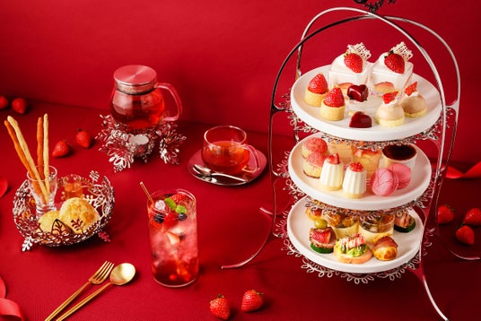 この時期ならではの苺の甘さや、華やかな見た目が楽しめるアフタヌーンティーです。