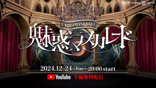KAMITSUBAKI STUDIO/SINSEKAI RECORD所属のバーチャルガールズグループ・VALISが、全編無料配信のバーチャルミニライブ「魅惑マスカレード」を2024年12月24日(火)20時より開催いたします。