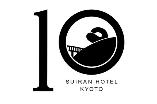 この度、開業10周年を記念し、シンボルとなる記念ロゴをホテル開業時に襖絵を制作した画家 品川 亮氏がデザインしました。ホテルのコンセプト「継往開来」に通ずる品川氏らしい作風であり、嵐山の象徴の月や渡月橋を家紋の様にあしらい10年間嵐山の地で培ってきた翠嵐の歴史とこれからの展望を表現したデザインとなっています。