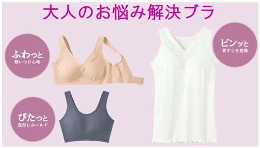 ブラ選びが難しくなってきた大人の悩みに応える『大人にちょうどいいブラ』、 『おさんぽブラ』、『大人の背筋のばしてすっきりブラ付きタンク』がセシールから新発売!
