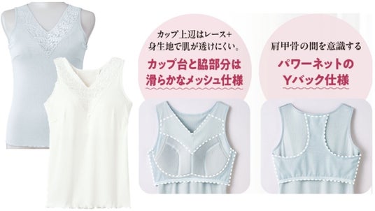 右『大人の背筋のばしてすっきりブラ付きタンク』(カラー:オフホワイト)