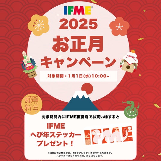 子ども靴ブランド「IFME」(イフミー:丸紅コンシューマーブランズ株式会社)は、IFME有明ガーデン店、IFME西宮ガーデンズ店、および公式オンラインストアにて『お正月キャンペーン』を1月1日(水)10:00から開催します。対象店舗でシューズをお買い上げいただいたお客様に2025年の干支「巳(へび)」をモチーフにデザインしたIFMEオリジナルステッカーをプレゼント。この機会にぜひお買い求めください。