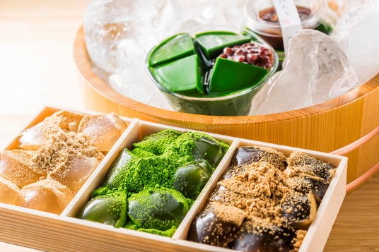 茶の露ほろり(1個)350円※写真上部 わらび餅3色詰合せ(1折)1,250円