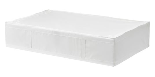 ベッドの下に収納できるサイズなので、ベッドリネンや枕、シーツ、季節用品などを入れてられて、限られたスペースを有効活用でき、ベッドルームをすっきり片付けられます。持ち手が付いているので、出し入れが簡単です。ホコリが付きにくく、コーナーの部分にネットを使用し、通気性を高めるデザインになっています。素材のポリエステルには、リサイクルポリエステルを90%以上使用しているサステナブルな商品です。