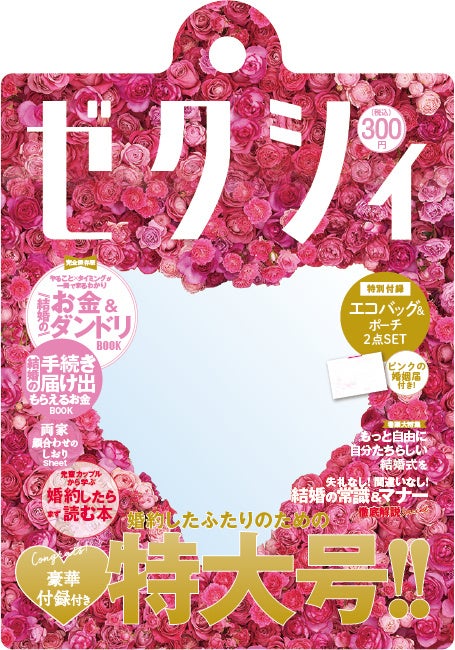 かざして写真を撮ると誰でもゼクシィの表紙になれる商品です。写真などをプリントした紙を中に入れることもできます。