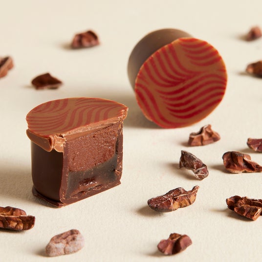 ヘーゼルナッツ風味のミルクチョコレートガナッシュ。