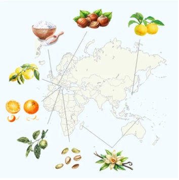 ピエール マルコリーニで使用されているカカオは、実際にショコラティエであるピエール自身が実際にその土地を訪れ、厳選したものを使用してきました。またカカオ以外の多くの素材も多くの食材の中から厳選したものを使用しています。2025年バレンタインコレクションに登場する「クール ココロ ピスターシュ」には最高級と言われるイタリアシチリア島・ブロンテ村産のピスタチオ、また「クール ココロ ユズ セザム」「ユズ ノワゼット」には日本・徳島県産の"柚子"を原材料に使用するなど、こだわりの食材が使用されています。