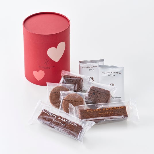 ショコラティエに加えパティシエのディプロマも取得しているピエール マルコリーニがこだわりぬいた、オリジナルクーベルチュールを使ったケーク ショコラやサブレ ショコラなどの焼き菓子を詰め合わせました。