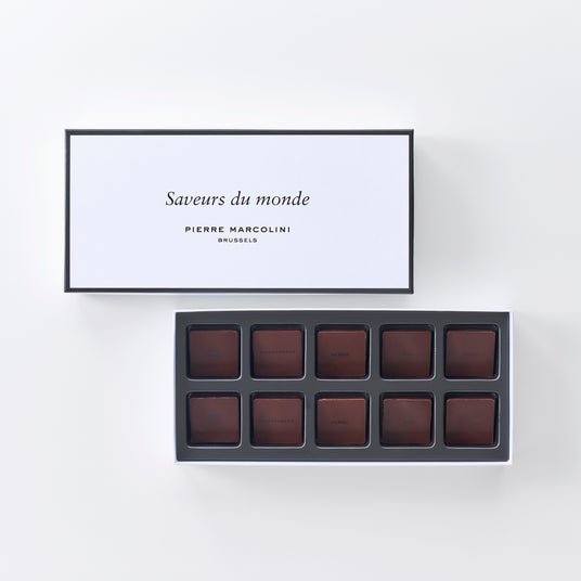 ピエール マルコリーニは上質で希少なカカオを求め、毎年、世界中を旅しています。最高品質の味わいのために、20年以上にわたり、自らの手でカカオ豆からチョコレートをつくることに情熱を注いできました。訪れる国が1年に30カ国を超えることも珍しくありません。彼のつくる独創的な作品は、驚きと発見に満ち溢れた彼の旅そのものと言えます。その喜びをチョコレートに表現し、感動を分かち合いたいという強い想いを胸に、ピエール マルコリーニは今日も世界を巡っています。