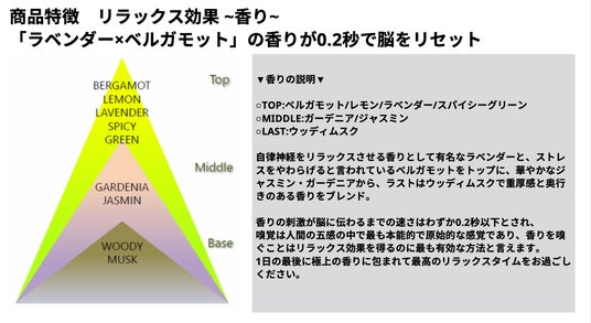 リラックス効果の高い香りが、心身にやすらぎをもたらします。