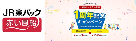 株式会社日本旅行(本社:東京都中央区、代表取締役社長:小谷野悦光)が、楽天グループ株式会社の運営する旅行予約サービス「楽天トラベル」にて提供している「JR楽パック赤い風船」が、サービス開始から1周年を迎えました。1周年を記念しまして、「楽天トラベル」にて、本日より、先着100名を対象とした10,000円オフクーポンの配布と、新規利用者を対象に「楽天ポイント」進呈率が通常の3倍になるキャンペーンが開始されます。
