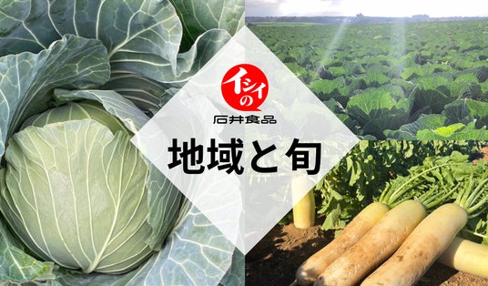 "未来に持続可能な、食の循環型ビジネスモデルを構築する。"私たちはその一環として、『地域と旬』というコ ンセプトのもと、独自の商品開発を行っています。日本の各地域で手間ひまをかけて育てられた食材を、石井食品の無添加調理※1 技術により魅力ある製品へとプロデュースします。市場の価格変動に左右されず、収穫時期ごとに適正価格で仕入れ、その製品に対する消費者の声を直接生産者のみなさまにフィードバックすることで持続的に良質な食材を作り、発展していける循環型ビジネスモデルを構築すること。それが『地域と旬』です。製品を通じ、その地域の認知向上と消費増加を行い、地域の活性化に繋げてまいります。 2030 年からは、食材活用を通じた雇用機会の創出、それによる生産量の増加を目指し、地域農業の発展をより強化します。