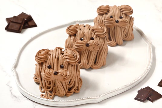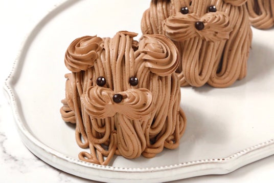 コクリームをふんわり絞りました。つぶらな瞳でなんとも可愛らしいビジュアルに。犬好き