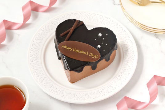 こだわり:可愛らしいハート型がバレンタインを彩るチョコレートケーキ。マダガスカル産のカカオマ