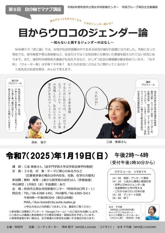 【吹田市】「目からウロコのジェンダー論」市民講座実施します