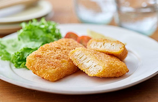 おにゃくカツ『おからこんにゃく(R)』で作ったプラントベースカツ。海外のお客様からも人気の「カツ」が動物性原材料不使用で提供できます。さまざまな食材やソースと合わせて味の変化が楽しみやすい、シンプルで飽きの来ない味付けに仕上げました。