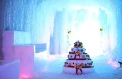 中は広い空間となっており、氷のチャペル、氷のBarなどを設置。氷の階段で、屋上に上がることができアイスタウン全体を見渡すことができます。