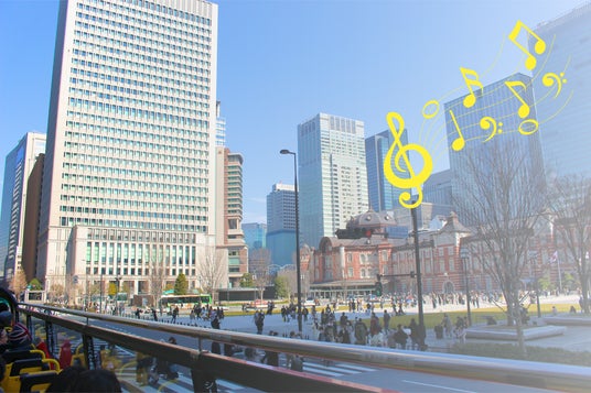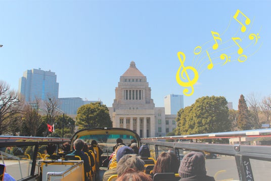スカイバスにご乗車いただき、音楽とともに東京の景色をご覧いただけます