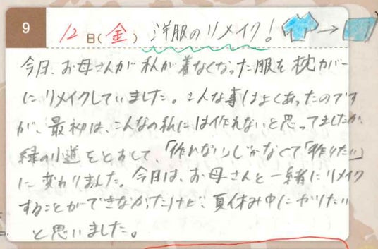 数年に渡り継続して服や布に関して優れた日記を書いた小学生を表彰する賞
