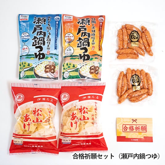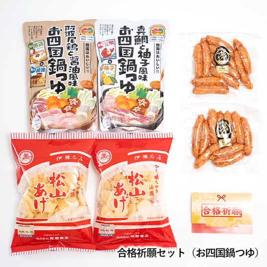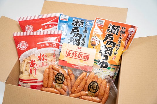 ストレート鍋つゆのように『"ストレート"で合格ができますように』、松山あげのように『気持ちを上げて受験に臨めますように』、ウインナーのように『受験戦争でwinner(ウイナー)になれますように』、そして『受験勉強を頑張ったあなたが合格できますように』、という願いを込めた合格祈願に寄り添った商品を詰め込みました。