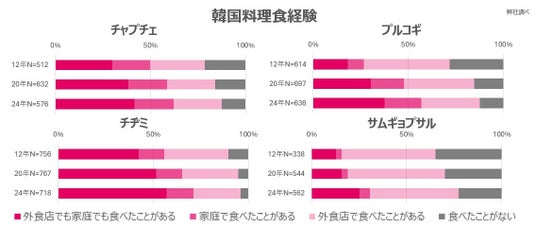 韓流ブームは2000年初頭に始まり、現在は第四次まで続いています。このブームの中で、音楽やコスメと並んで韓国料理も注目を集めており、居酒屋やファミリーレストラン、コンビニエンスストア、スーパーマーケットなどで開催される韓国フェアを通じて、生活者の韓国料理を選ぶ機会が増えています。弊社の調べによると食経験としては年々伸長しており、外食店やご家庭でも召しあがられていることから、日本の食に韓国料理が浸透してきているといえます。