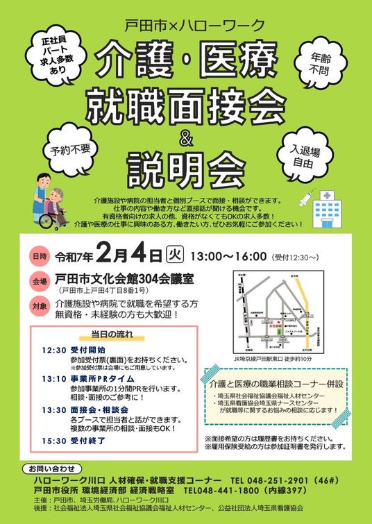 【初開催】埼玉県戸田市×ハローワーク「介護・医療就職面接会&説明会」を実施します
