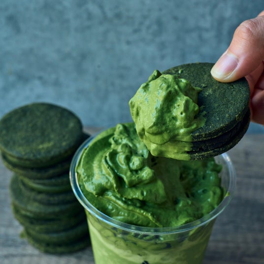 さらに、クッキーサンドを泡抹茶にたっぷり浸すことで、より濃厚な抹茶の味わいをご堪能いただけます。