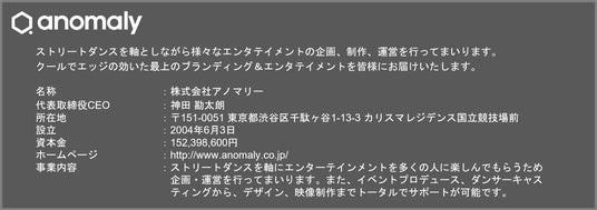 株式会社アノマリー(本社:東京都渋谷区、代表取締役CEO:カリスマカンタロー)は、国内発信であり世界最大規模のソロダンスバトル『マイナビDANCEALIVE 2025 (ダンスアライブ ニセンニジュウゴ)』の予選第6弾として、『マイナビDANCEALIVE 2025 CHARISMAX VI』を、2025年2月2日(日)に新宿FACEにて開催いたします。