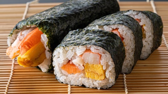 「大津」海鮮巻(1本) 税込1,000円(玉子・サーモン・イカ・カレイ・カニカマ・カラフトシシャモ)