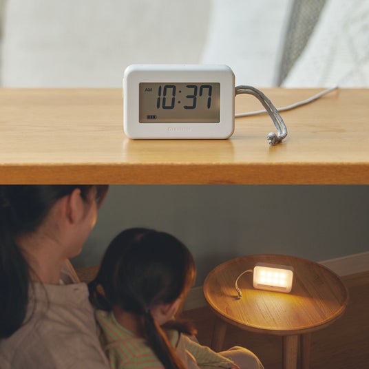 そこで、ふだんからライト付きのデジタル時計として使用でき、もしもの時に電気供給がなくなってもあかりが点灯するランタンを考えました。さまざまなシーンで役立つあかりでくつろぎの時間をお楽しみいただきながら、もしもの時の備えをすることができます。