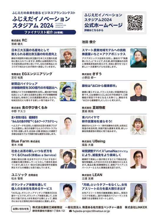 ・ファイナリスト10者のビジネスプランは、藤枝市や支援機関などと協力を図りながら地域全体でプランの実現に向けてサポートします。