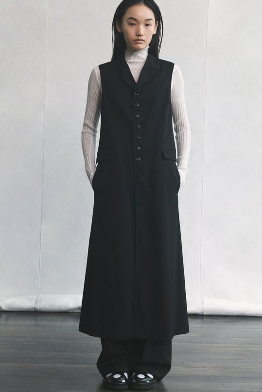 ドレスのように着るロングベスト。