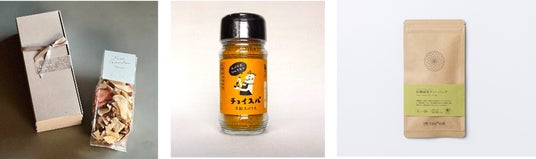 ※一部商品(左)フルーツグラノーラ、(中央)チョイスパイスカレー味、(右)有機緑茶ティーバッグ