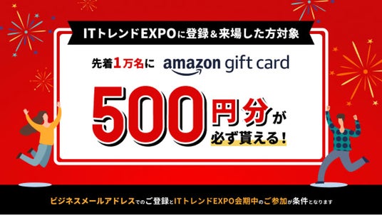 ■ITトレンドEXPOに参加登録をしていただいた先着1万名様にAmazonギフトカード500円分をもれなくプレゼントするキャンペーンがございます。