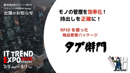 業界最大級のオンライン展示会【ITトレンドEXPO2025 Spring】3月5日(水)~7(金)に、RFID備品管理システム『タグ衛門』を出展いたします。