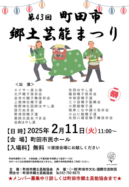 【東京・町田】第43回 町田市郷土芸能まつりを開催します
