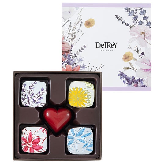 ベルギーの四季をショコラで表現した新作のコレクションが登場。春は爽やかな味わいのジャスミン&レモン、夏はほのかに香るラベンダー、秋は塩味の中に甘さが広がる塩キャラメル、冬はホットワインをイメージしたスパイシーラズベリー。春夏秋冬を表した個性豊かな4種のフレーバーのショコラとハートのショコラの詰め合わせです。