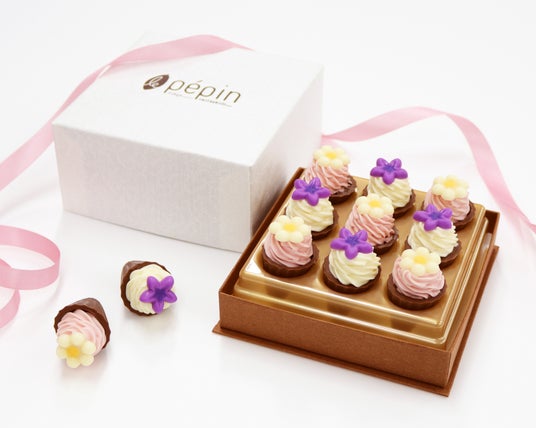 2種類のお花をトッピングしたかわいらしいチョコレートを、花壇をイメージしたパッケージに包みました。