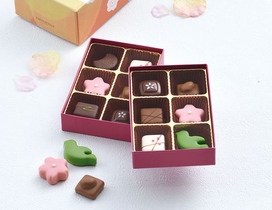 春の訪れを感じる桜味や黒豆をのせたチョコレートなど、京都の文化が息づく2段ボックスです。