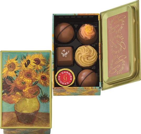 世界的に人気のある画家フィンセント・ファン・ゴッホの「ひまわり」を描いた缶に、1粒ずつ丁寧に仕上げた小粒のチョコレートをセットしました。